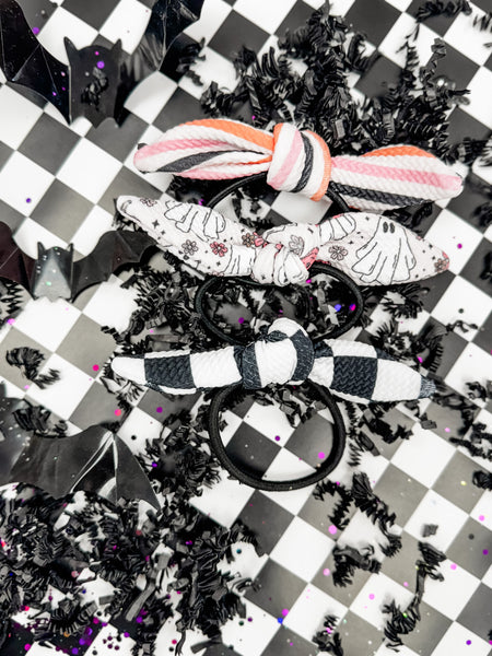 These bows are so simple and fun, great for all types of tresses. Added to an elastic hair tie for easy styling!